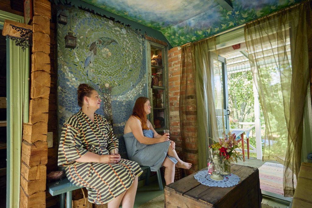 One of the most treasured features of Luova Puu is the over 100-year-old “Paradise Sauna.” This traditional Finnish log sauna has welcomed countless visitors to experience the authentic, warm, and deeply refreshing atmosphere of Finnish sauna culture – often combined with moments of relaxation in the bathing tub under the open sky.